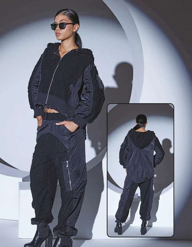H4 London Women's Black Deconstructed Hooded Bomber Jacket